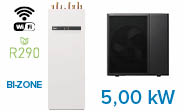 Aquarea KIT met Hydromodule All-in-one compact BI-ZONE WH-ADC0509L3E5B met inhoud van 185 liter, zijn passend buitendeel WH-WDG05LE5 R290 en smartphone en service cloud interface CZ-TAW1(B). • Voedingsspanning 230 Vac. • Afmetingen All-in-one compact: H1650 x B598 x D600 mm. • Alle aansluitingen zitten bovenaan het toestel.